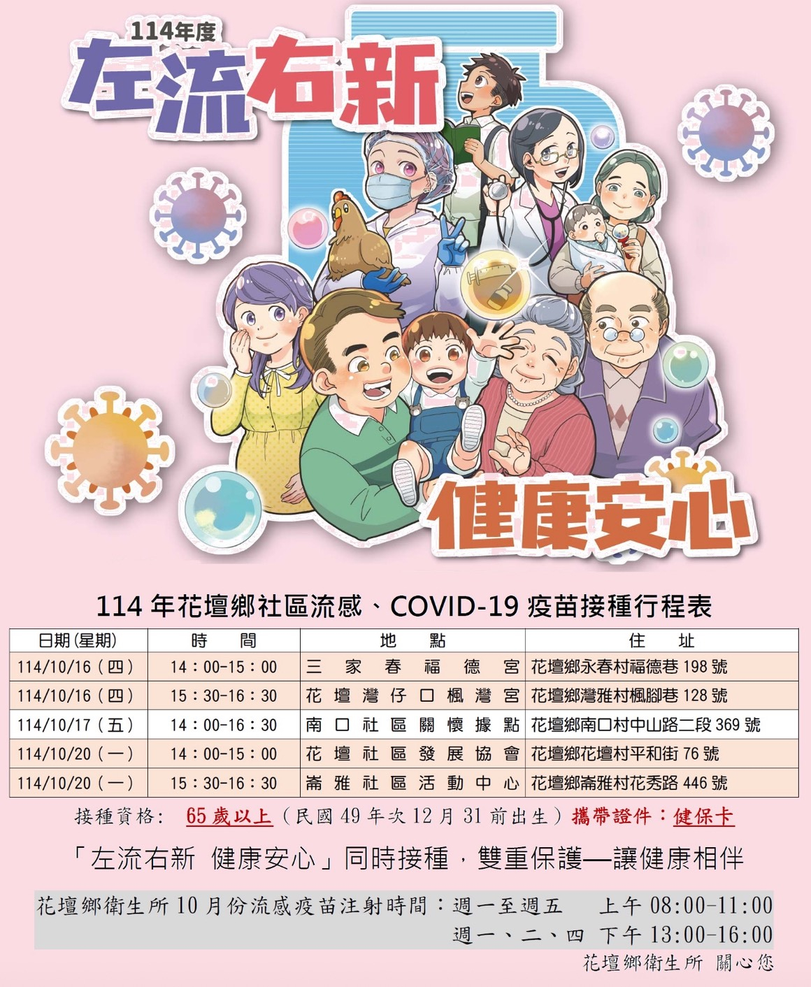 ::: 首頁 › 關於本所 › 活動花絮 活動花絮 114年10月13日~2025流感新冠疫苗(左流右新 健康安心)~ 2025-10-13 114年10月13日~2025流感新冠疫苗(左流右新 健康安心)~照片 << < 1 > >> 資料筆數 【1】頁數【1/1】